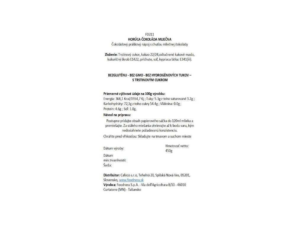 Jedinečná inovatívna horúca čokoláda lahodnej chuti. Vyrobená z ušľachtilých surovín. (22/24 kakao, bez lepku, bez GMO, bez hydrogenovaných tukov a bez laktózy).