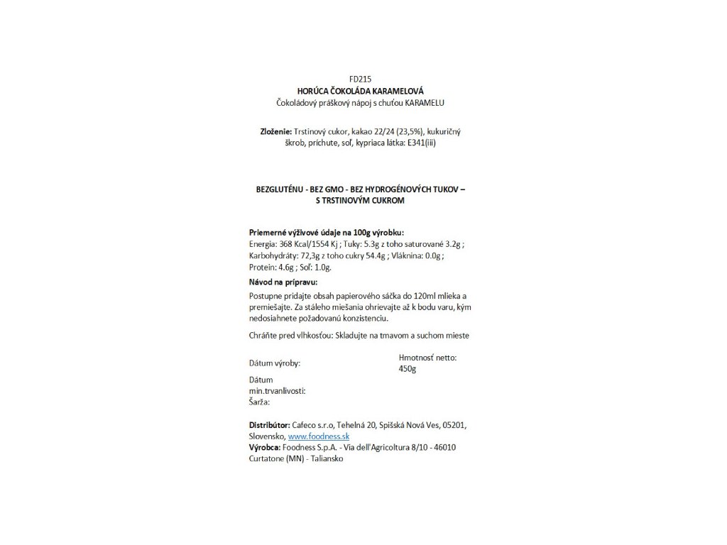 Jedinečná inovatívna horúca čokoláda lahodnej chuti. Vyrobená z ušľachtilých surovín. (22/24 kakao, bez lepku, bez GMO, bez hydrogenovaných tukov a bez laktózy).