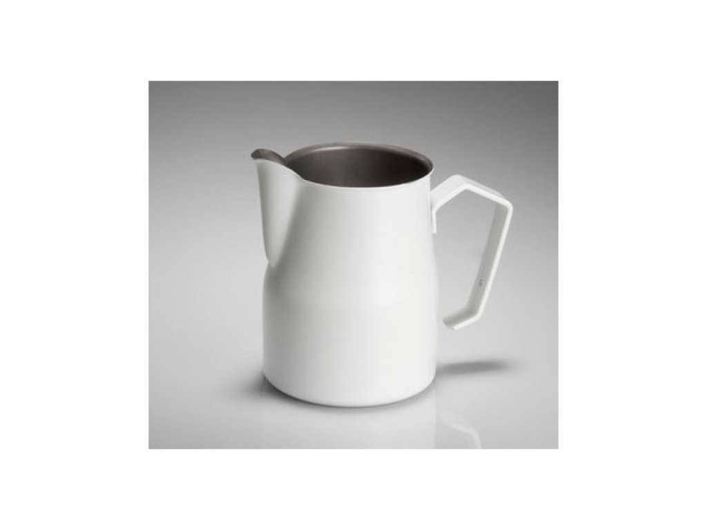 Konvička na mlieko Motta zo série Europa s tvarovanou výlevkou a dnom z nerezovej ocele. Ideálna pre latte art techniku a dekorácie cappuccina. Z vnútornej strany je konvička pieskovaná a z vonkajšej strany farebný nástrek.